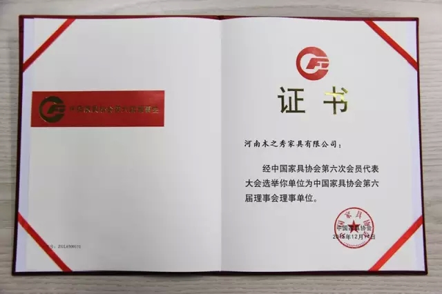 河南木之秀家具有限公司當選為中國家具協會第六屆理事會理事單位